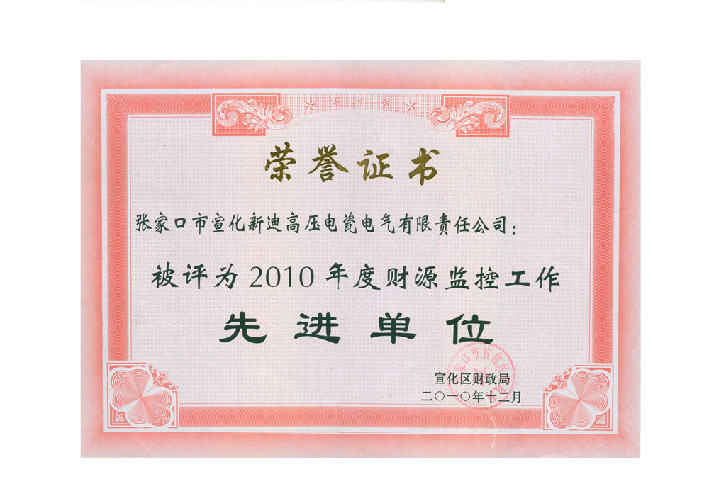 2010年12月,榮獲宣化區財政局“2010年度財源監控工作”先進單位